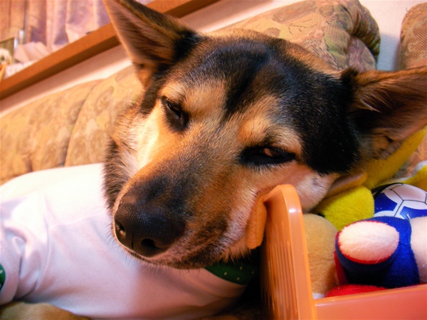 タロ、心のつぶやき・・・おいらは、こなつがいない方が調子出るんだけどなぁ・・・
