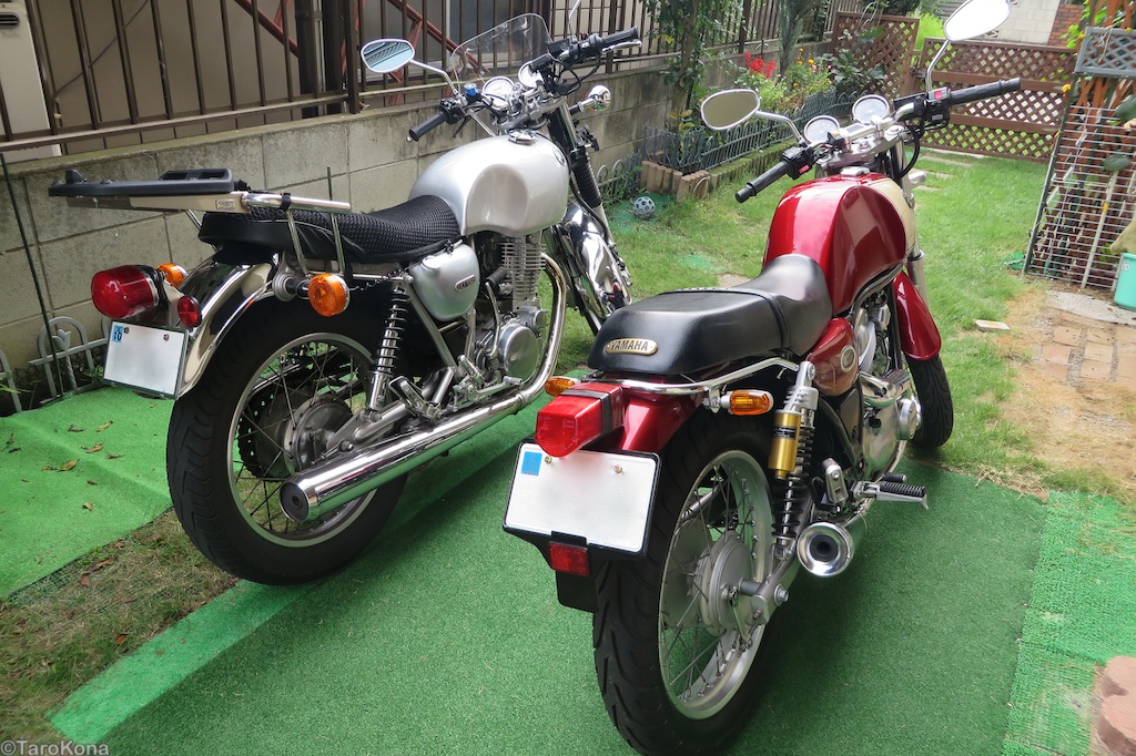 左がSR400(タンク/サイドカバー/シート等々は否ノーマル)、右がSRV250S。