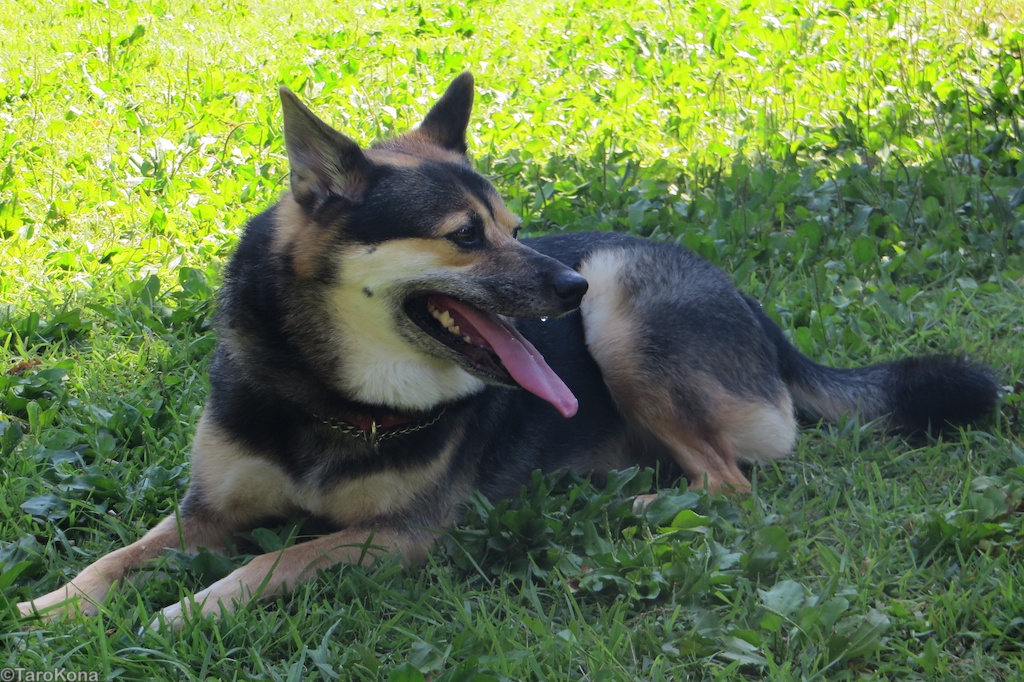 (炎天下の中甲羅干しするタロ)