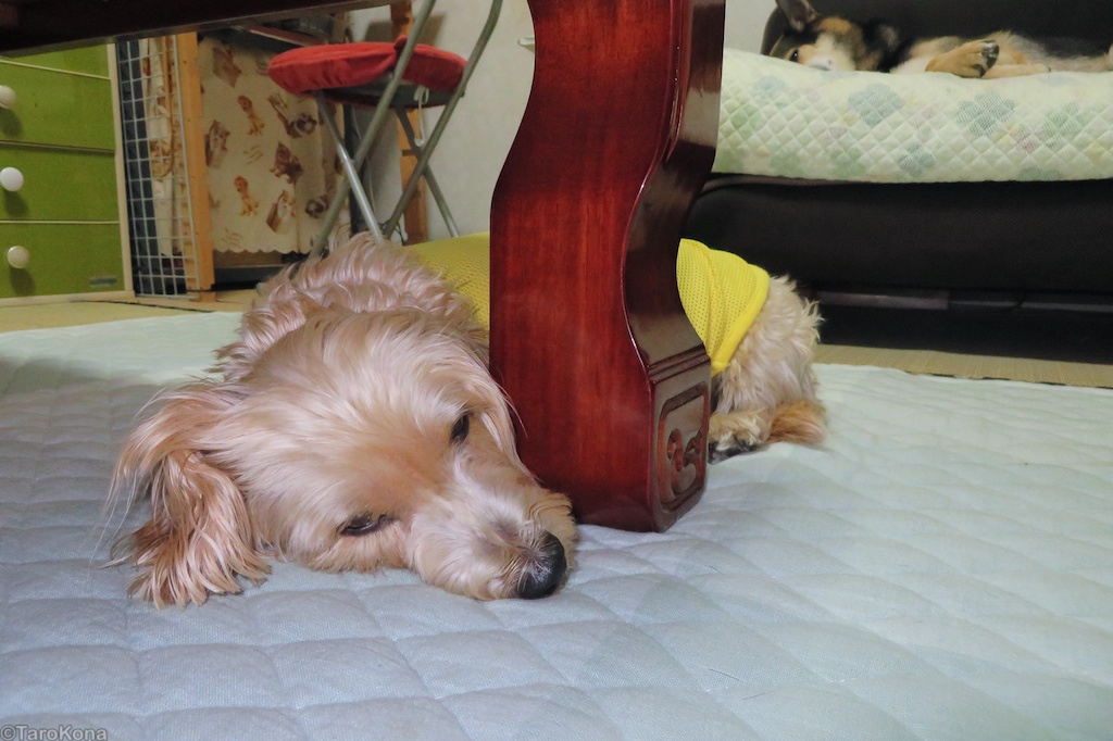おっと、雷まで鳴り始めました。こなつさんには試練の2日間となりそうです。土砂降りの雨の音も怖いんだよねぇ〜、こなちっち。