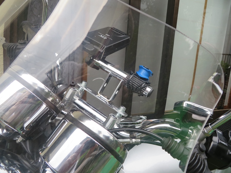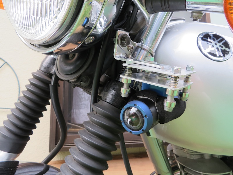磁石を使った防振ダンパーを作ってみたり、カメラ用のパイプなどに固定できるクランプを利用してみたり、フロントフォークにウィンカーステーを利用して固定してみたり。